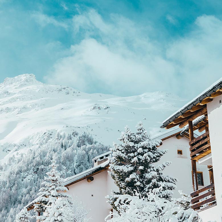 Explore peaceful trails surrounded by snow covered forests and mountains.